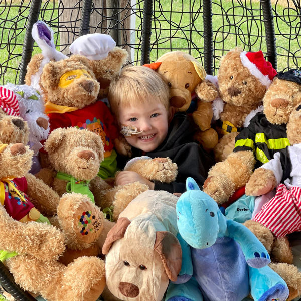 Jamie loves life, especially when it’s full of teddy bears! His cuddly companions are an important source of support, having been gifted by generous donors at a time when he needed them most.