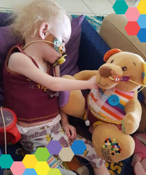 “My son has brain cancer and has a couple of the bears. This one I personalised with an NG tube. They really do make children happy.” – Chontelle S
