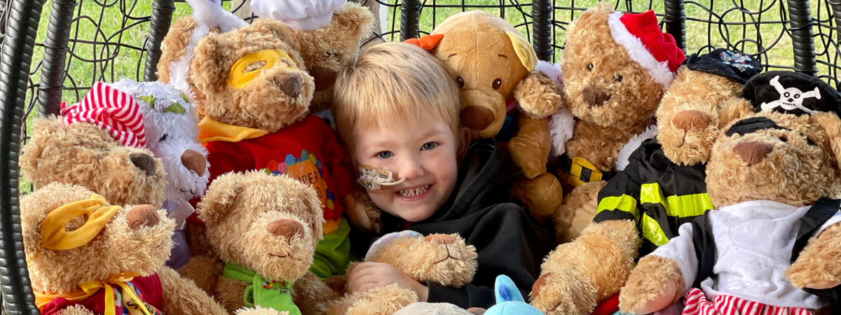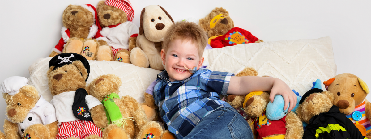 And of course, Jamie has been busy playing with all The Kids’ Cancer Project bears he received while in hospital.
