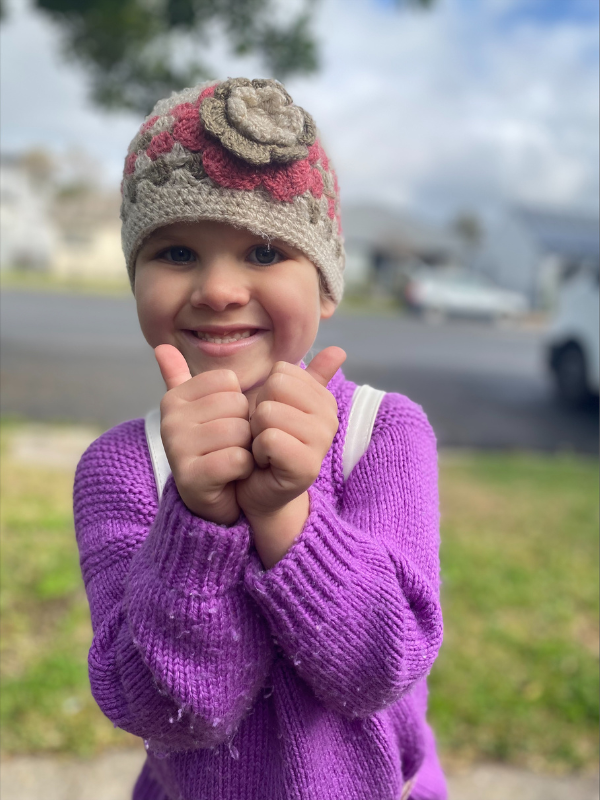 She wants to get into gymnastics when she’s better, but she also wants to do soccer because her brother and sister play it, and her little kindy buddies are playing touch footy, so she obviously wants to do that too! She’s very outgoing and just wants to join in with everyone!